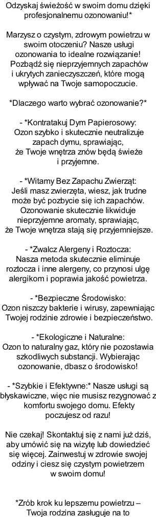 KONTAKT ZADWON JUZ TERAZ  BY UMÓWIĆ WIZYTE Tel.510835111 OZONOWANIE
